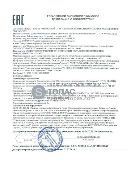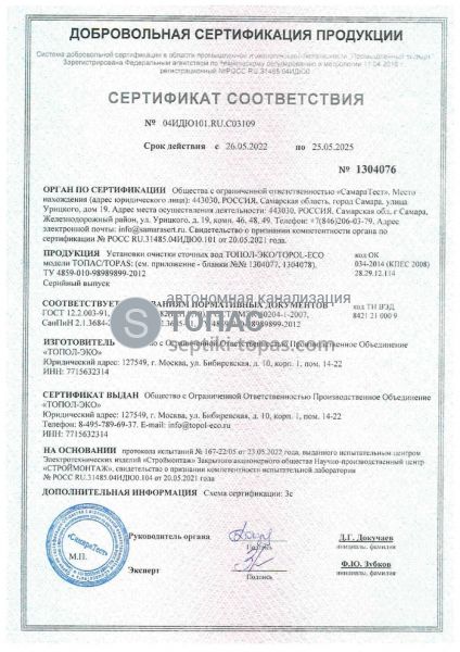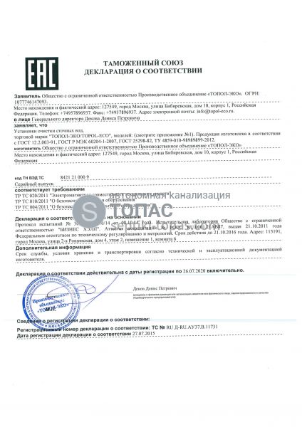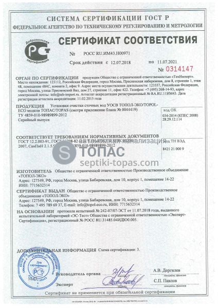 Септик ТОПАС-С-9 поставляются полностью укомплектованными и готовыми к эксплуатации. Изготавливается и поставляется в едином корпусе. Стандартная комплектация: